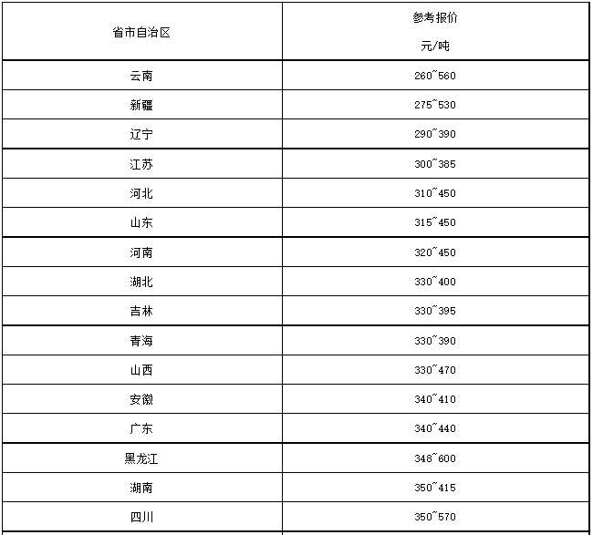 31省市地區(qū)P.O42.5散裝水泥市場