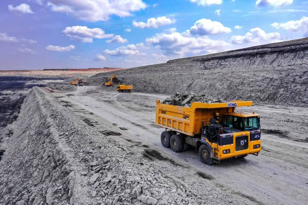 數十輛徐工礦車穿梭往來