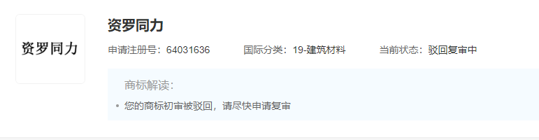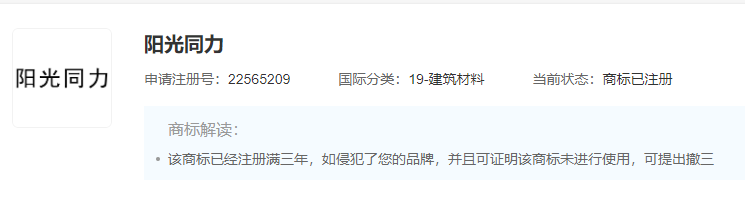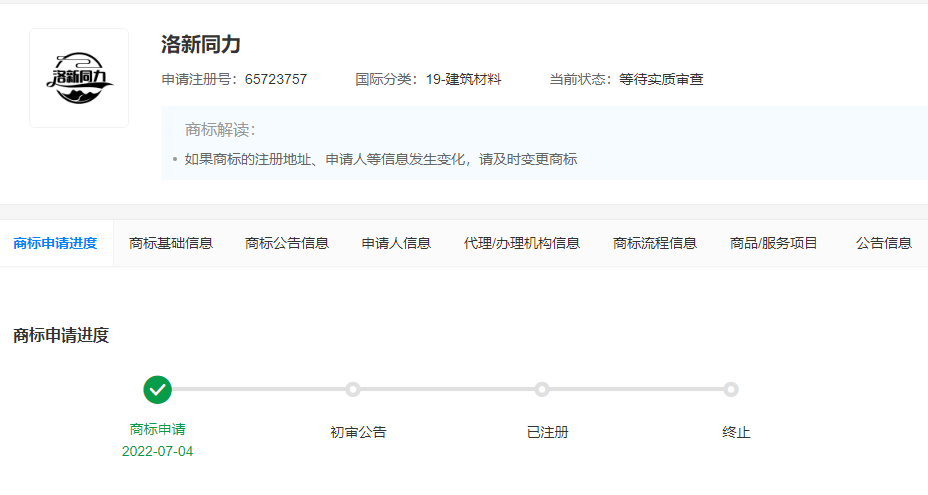 “洛新同力”,商標(biāo)申請(qǐng)人為洛陽畔山水泥有限公司。2023年2月10日商標(biāo)注冊(cè)申請(qǐng)被駁回,當(dāng)前狀態(tài)為等待實(shí)質(zhì)審查。