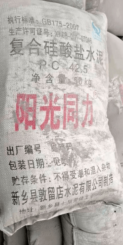 標(biāo)稱品牌“陽光同力”,商標(biāo)已注冊(cè),生產(chǎn)許可證在有效期內(nèi)。產(chǎn)品外包裝可見,生產(chǎn)許可證編號(hào):XK08-001-07046;制造企業(yè):新鄉(xiāng)縣敦留店水泥有限公司;地址:新鄉(xiāng)縣七里營鎮(zhèn)。