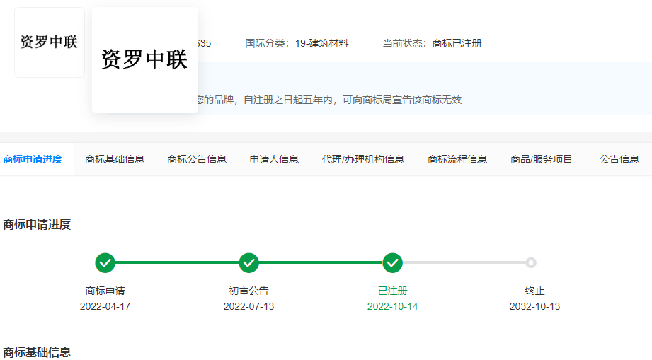 標(biāo)稱品牌“資羅中聯(lián)”已注冊(cè),商標(biāo)申請(qǐng)人為洛寧縣新陽商貿(mào)有限公司,而非標(biāo)稱的“洛陽新陽商貿(mào)有限公司”。