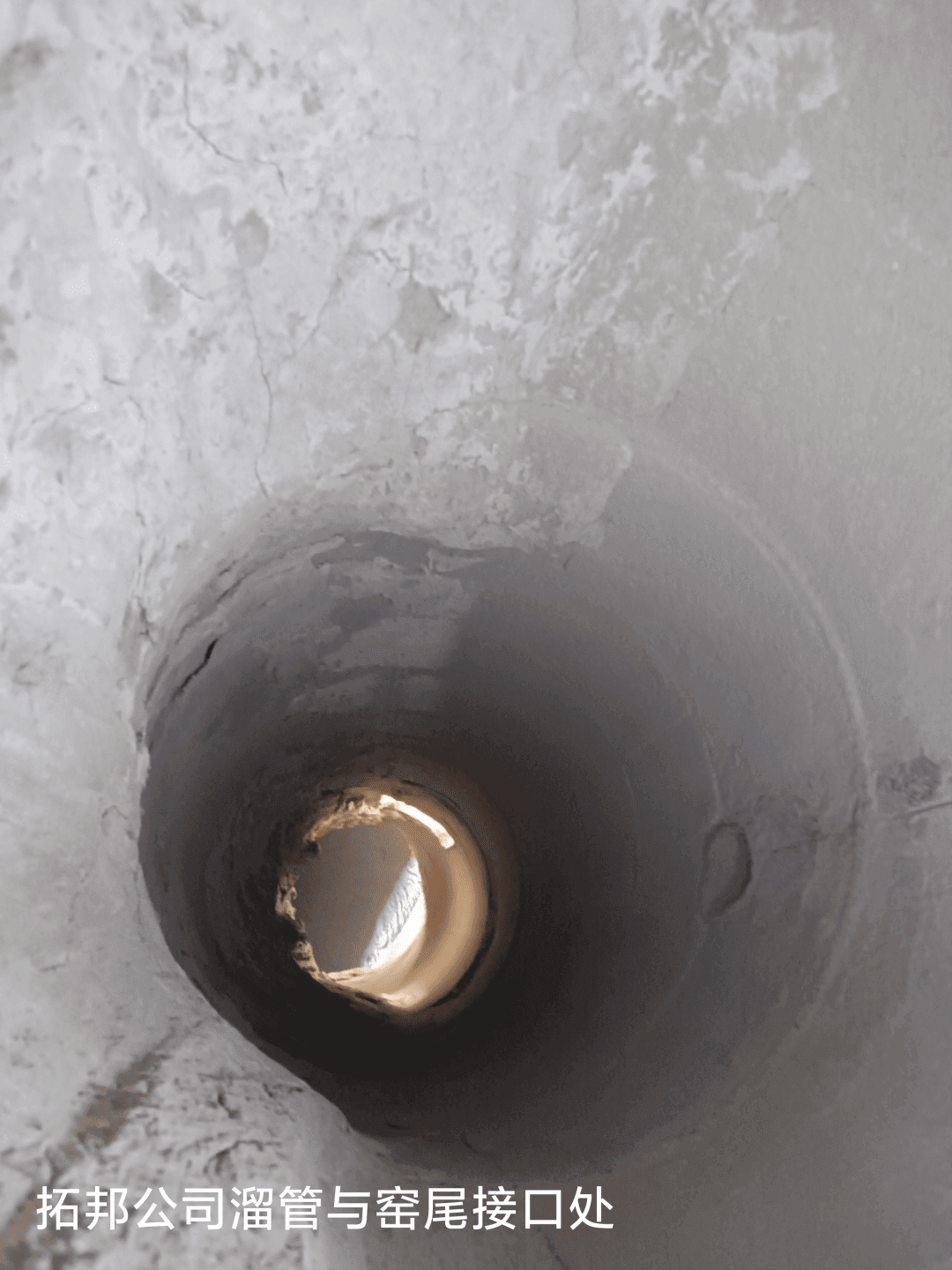 相比技改前所使用的其他溜管,拓邦科技C5B系列微晶溜管具有整體低導(dǎo)熱、防結(jié)皮、抗侵蝕、熱震穩(wěn)定性高、節(jié)能環(huán)保、使用周期長(zhǎng)等優(yōu)異性能,有效解決了下料管因結(jié)皮堵塞導(dǎo)致的停窯事故,并且解決了清堵作業(yè)工人有可能的安全問題。從長(zhǎng)遠(yuǎn)上來看,具有提高產(chǎn)量、節(jié)能降耗、保障作業(yè)安全的效益,其間接效益是不可估量的。