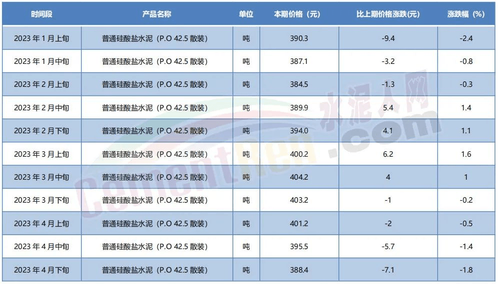 P.O42.5散裝水泥參考報價一覽