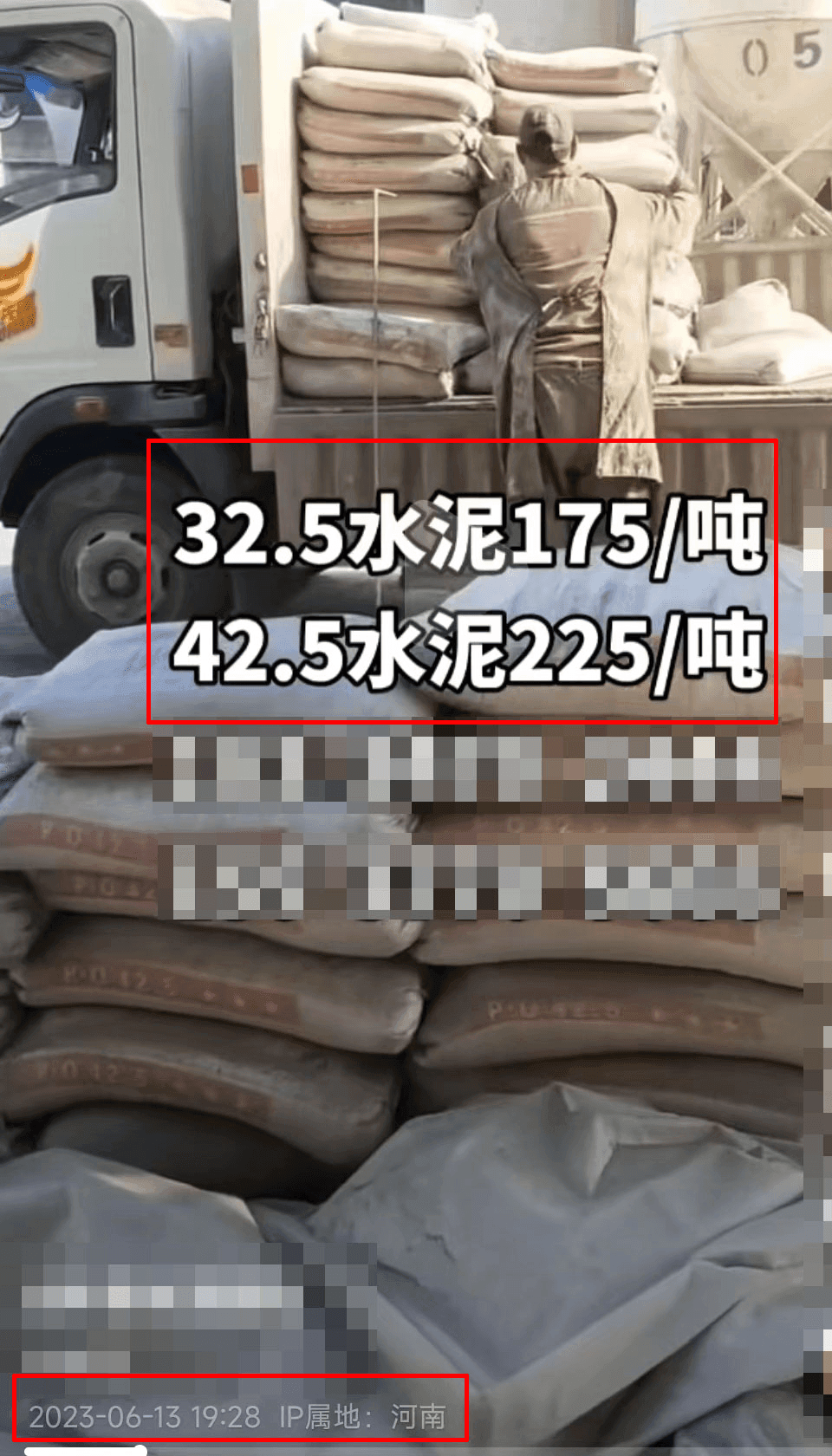 6月13日河南新鄉(xiāng)一經(jīng)銷商32.5水泥報價175元/噸,42.5水泥報價225元/噸。