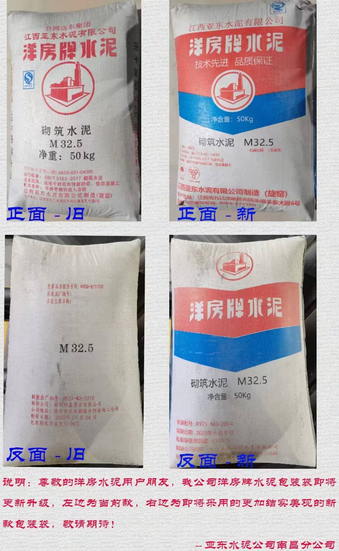 江西亞?wèn)|水泥洋房牌M32.5砌筑水泥包裝換新。