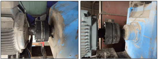 無獨有偶,山東聯(lián)合王晁水泥有限公司(以下簡稱“王晁水泥”)亦在其500kW輥壓機傳動系統(tǒng)中采用了江蘇磁谷同步永磁耦合器新型柔性傳動保護裝置,運行效果良好,振動大幅減小(現(xiàn)場測量振動值:電機端水平2.3 mm/s,垂直0.9 mm/s,軸0.2 mm/s;減速機端水平0.4 mm/s,垂直0.2 mm/s,軸0.4mm/s)。