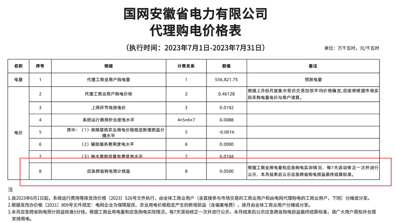 在迎峰度夏(冬)期間,因應急跨省購電產生的損益,原則上按照“月預告、周修正”方式發布。在月末3日前公布的代理購電工商業用戶電價表中公示次月應急跨省購電預計損益標準,次月內根據工商業用電量和應急跨省購電實際情況,每7天滾動修正一次并進行公示,次月結束后公示上月應急跨省購電損益最終結算標準,將進一步保障用戶知情權和用電需求。