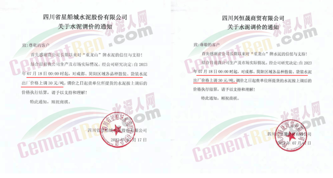 據水泥人網近期消息,四川省內多家品牌企業通知上調水泥報價30-50元/噸。(相關鏈接:大漲50元/噸!華潤、華新、紅獅價格集體反彈!)
