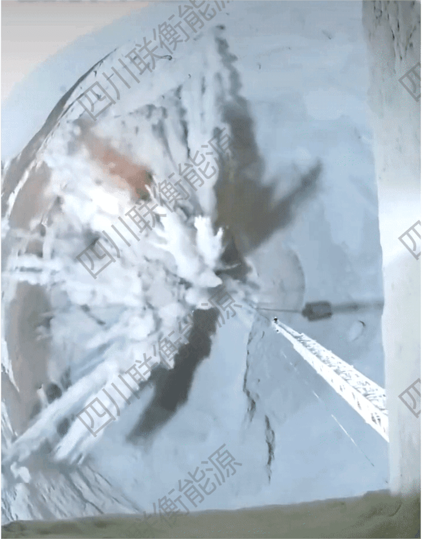 針對(duì)這一世界性行業(yè)難題,四川聯(lián)衡能源發(fā)展有限公司(以下簡(jiǎn)稱(chēng)“聯(lián)衡能源”)通過(guò)5年的自主研發(fā)和不斷升級(jí),實(shí)現(xiàn)了無(wú)人進(jìn)庫(kù)清壁通堵,徹底杜絕了庫(kù)內(nèi)高處作業(yè)和坍塌掩埋的作業(yè)風(fēng)險(xiǎn),并在清庫(kù)作業(yè)中全程開(kāi)放庫(kù)頂庫(kù)內(nèi)視頻監(jiān)控,供甲方實(shí)時(shí)監(jiān)督。