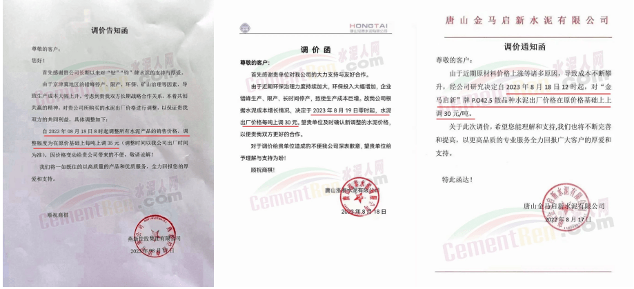 京津冀主要品牌企業(yè)金隅冀東、山水水泥等16家水泥企業(yè)通知即日起水泥及熟料報價上調(diào)30-40元/噸。就連常期供應(yīng)京津冀市場的內(nèi)蒙古天皓水泥也有針對性的上調(diào)了水泥報價。