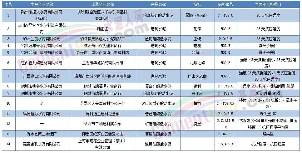 流通領域14批次水泥質量不合格