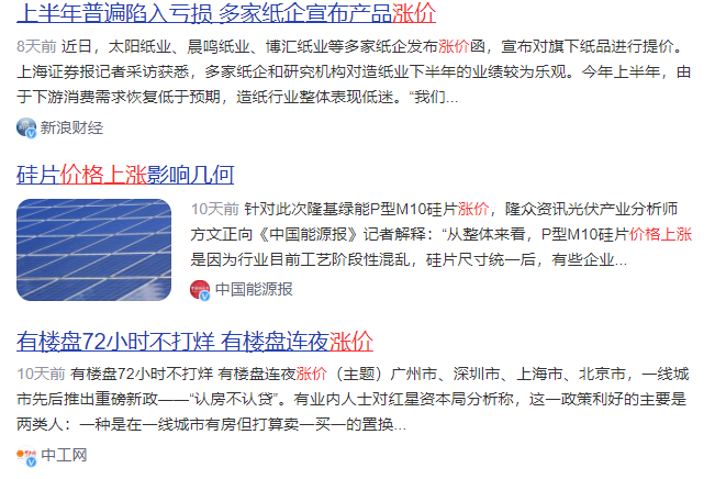 據(jù)了解,今年下半年以來(lái),大宗商品持續(xù)性上漲,已經(jīng)成為趨勢(shì),帶來(lái)一種經(jīng)濟(jì)復(fù)蘇的景象。紙業(yè)、糖業(yè)、電器、化工、芯片、水泥等多個(gè)行業(yè)的數(shù)百家企業(yè)紛紛宣布漲價(jià)。