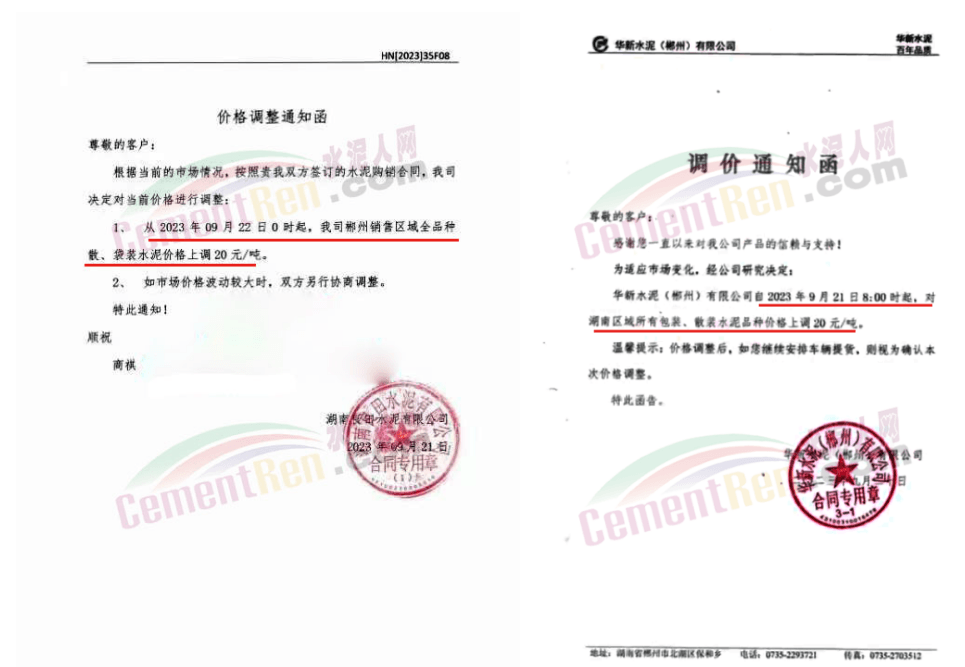 9月22日,華潤水泥旗下湖南良田水泥上調(diào)郴州銷售區(qū)域全品牌水泥價格20元/噸。9月21日,華新水泥(郴州)公司上調(diào)水泥價格20元/噸。