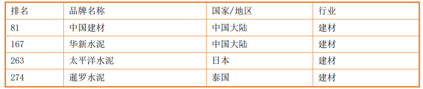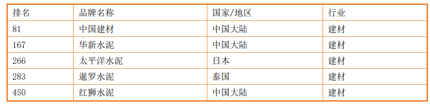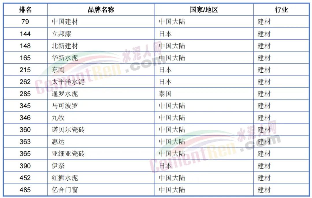 由世界品牌實驗室(WorldBrandLab)主辦的“亞洲品牌大會”于9月20日在香港召開。會上發(fā)布了2023年《亞洲品牌500強》排行榜。這是世界品牌實驗室第十八次對亞洲品牌的影響力進行的測評,共有20個國家和地區(qū)的500個品牌入選。建材行業(yè)包括中國建材、北新建材、華新水泥、紅獅水泥等企業(yè)入選。