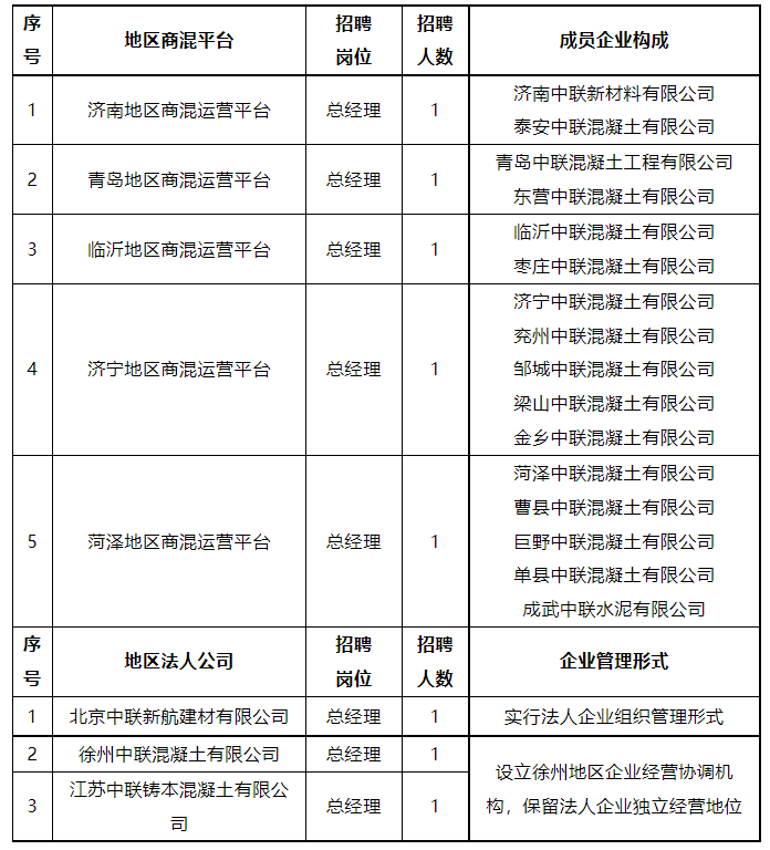 非中國(guó)建材系統(tǒng)內(nèi)應(yīng)聘人員具有大型國(guó)有商混企業(yè)管理經(jīng)歷者優(yōu)先考慮。以上任職資格中任職年限計(jì)算截止至2023年9月30日。