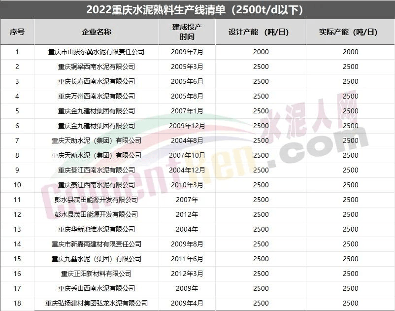 重慶市2025年底前退出單條生產(chǎn)線(xiàn)2500t/d及以下的普通水泥熟料產(chǎn)能