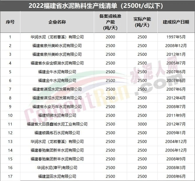 相關(guān)業(yè)內(nèi)分析人士表示,“十四五”期間無(wú)論是從水泥熟料單位產(chǎn)品綜合能耗水平還是從設(shè)備技術(shù)指標(biāo)、區(qū)域產(chǎn)能集中度、產(chǎn)能過(guò)剩程度來(lái)考量,對(duì)2500t/d及以下熟料生產(chǎn)線(xiàn)都是“生死”考驗(yàn)。從已經(jīng)發(fā)布2022年熟料生產(chǎn)線(xiàn)清單的24個(gè)省市地區(qū)來(lái)看,除特種水泥生產(chǎn)線(xiàn)外在產(chǎn)2500t/d及以下熟料生產(chǎn)線(xiàn)共600多條。