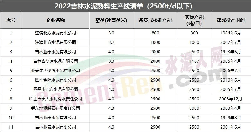 吉林要求2025年底前通過(guò)省內(nèi)產(chǎn)能置換,逐步退出2500t/d以下熟料生產(chǎn)線(xiàn)