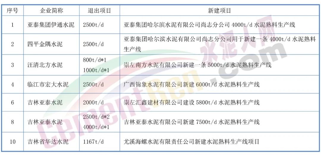 另?yè)?jù)了解,今年4月中旬,吉林省工信廳公布水泥熟料生產(chǎn)線(xiàn)清單顯示,9條2500t/d及以下水泥熟料生產(chǎn)線(xiàn)已通過(guò)產(chǎn)能置換出讓?zhuān)顺鲰?xiàng)目將隨著新建線(xiàn)投產(chǎn)逐步退出。