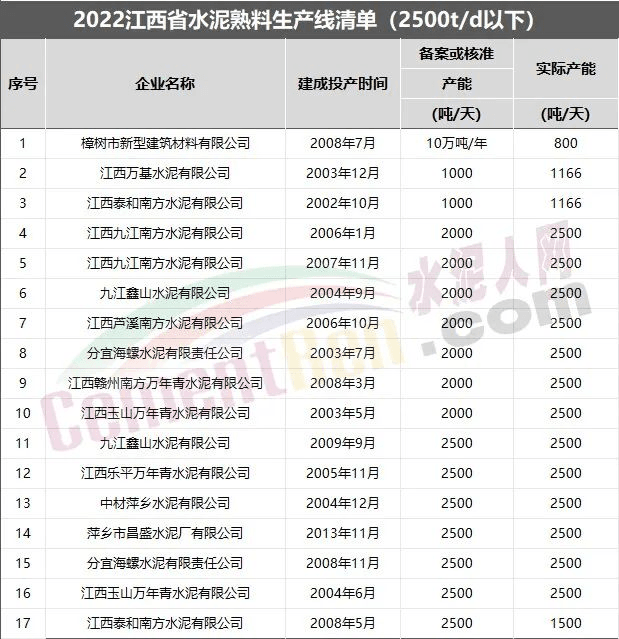 江西省2025年底前淘汰2000t/d及產(chǎn)能利用率較低的地區(qū)的2500t/d生產(chǎn)線(xiàn)