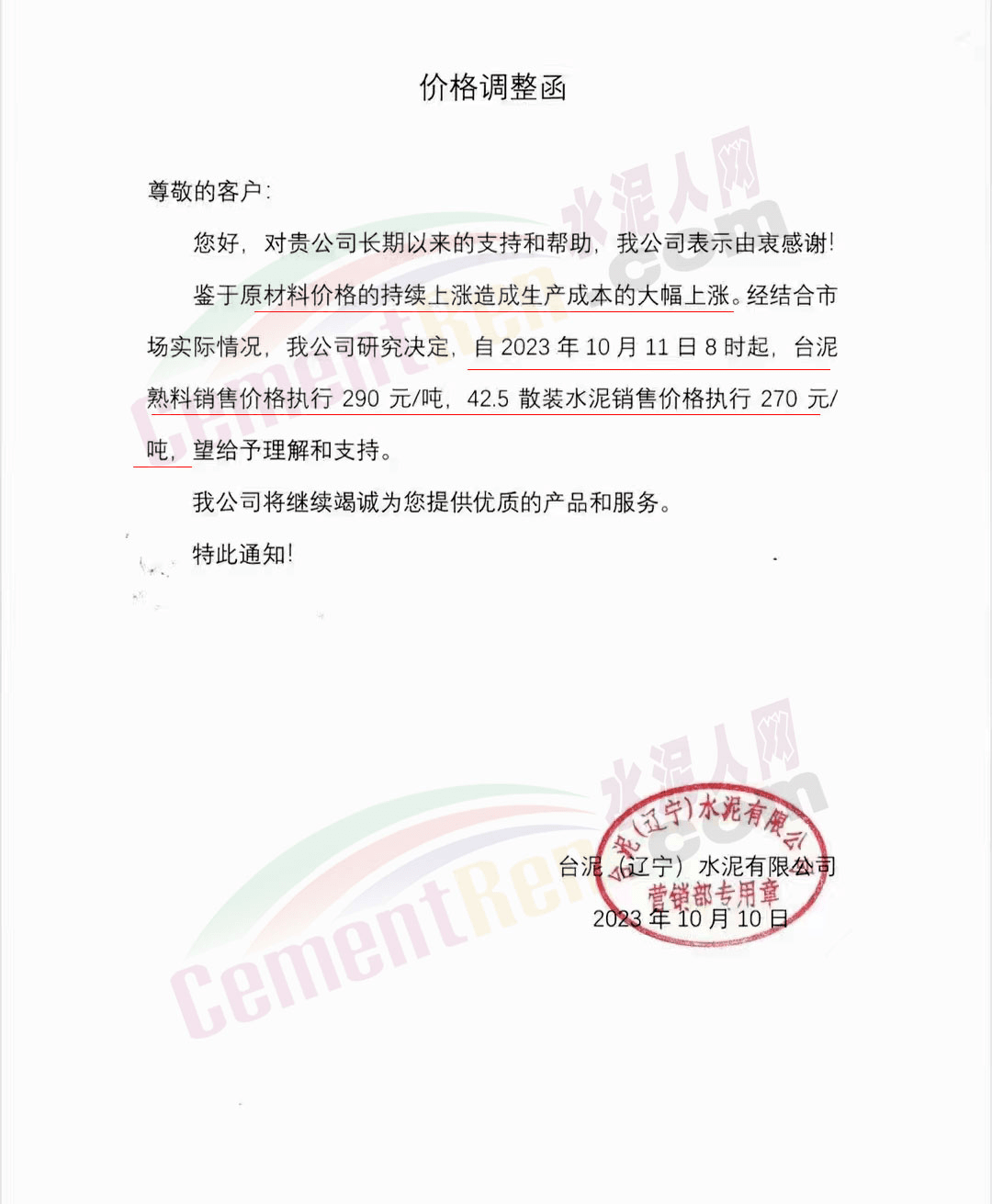 水泥人網通訊員消息:日前遼、吉、黑區域主要品牌企業再次通知上調水泥、熟料報價。
