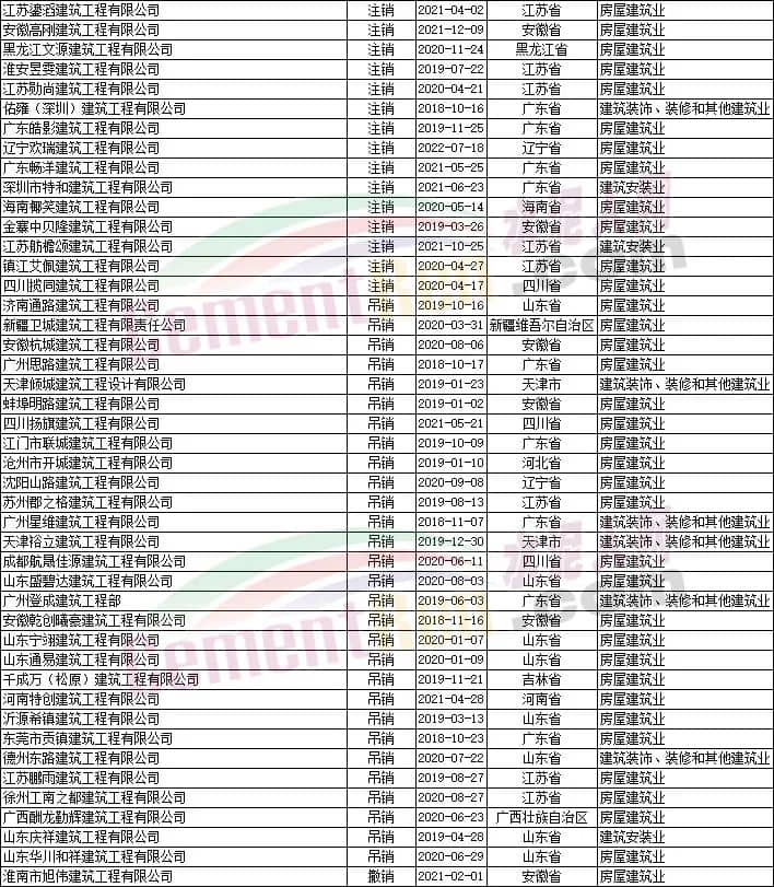 近5年成立,名稱中有“建筑工程”字樣,所屬行業為房屋建筑業、建筑安裝業、建筑裝飾、裝修和其他建筑業的,目前狀態是撤銷、吊銷、注銷的企業共1435家。
