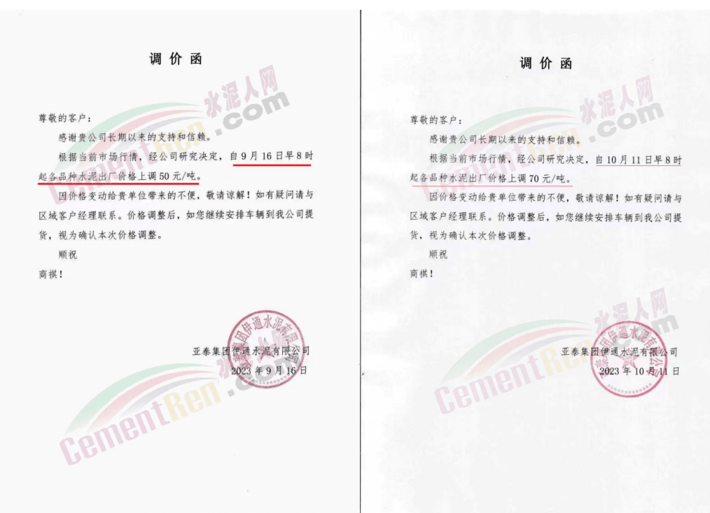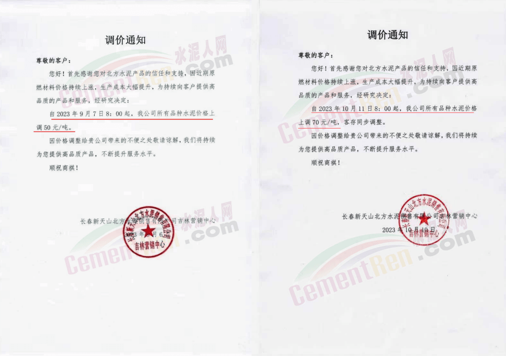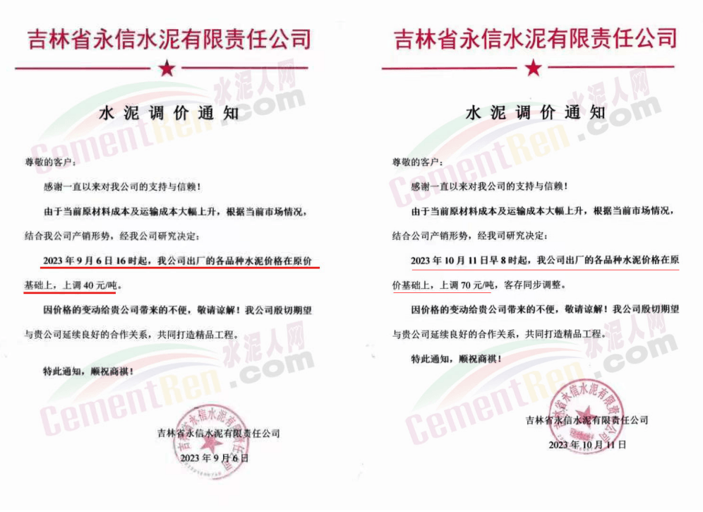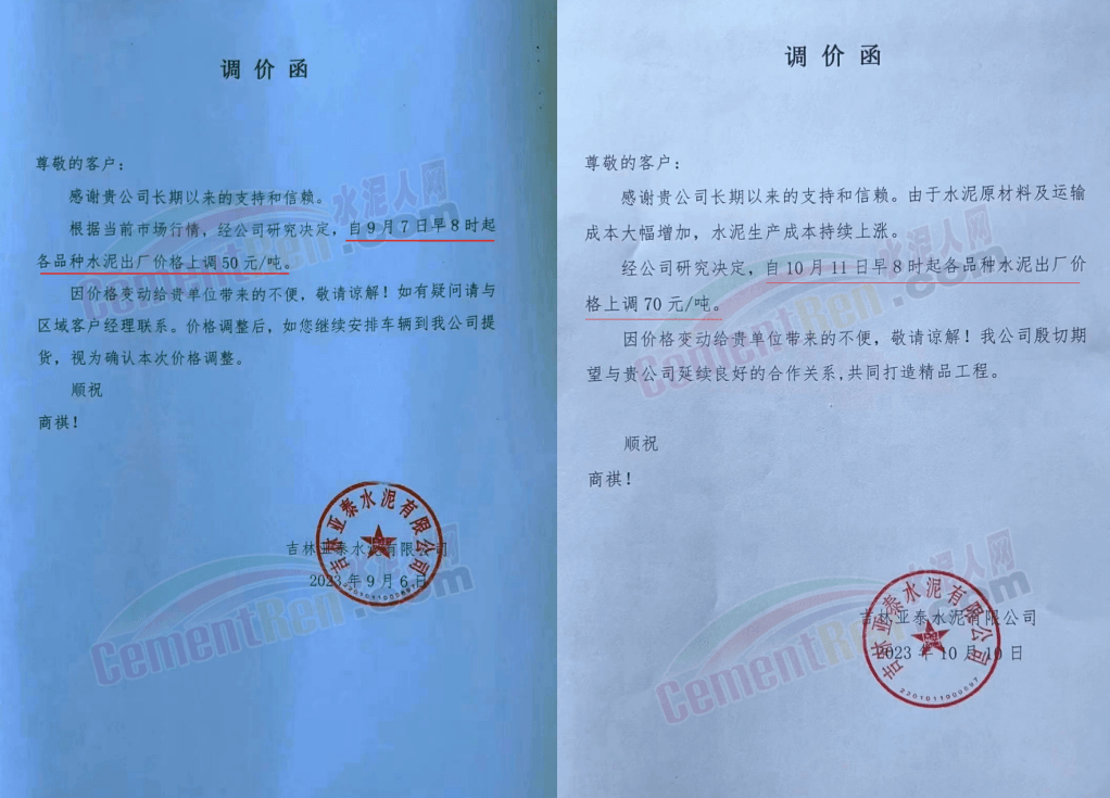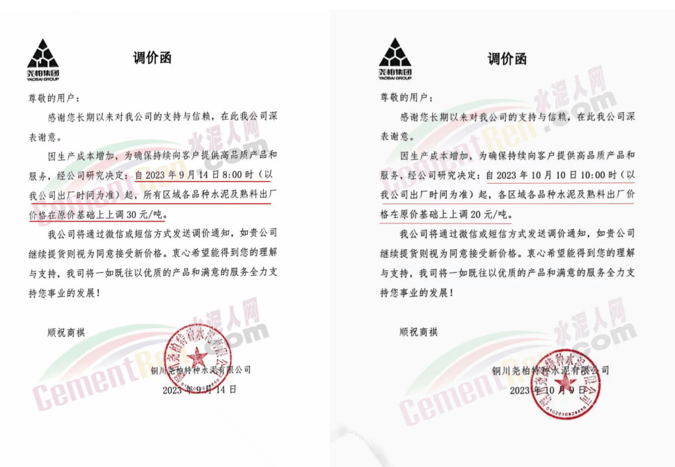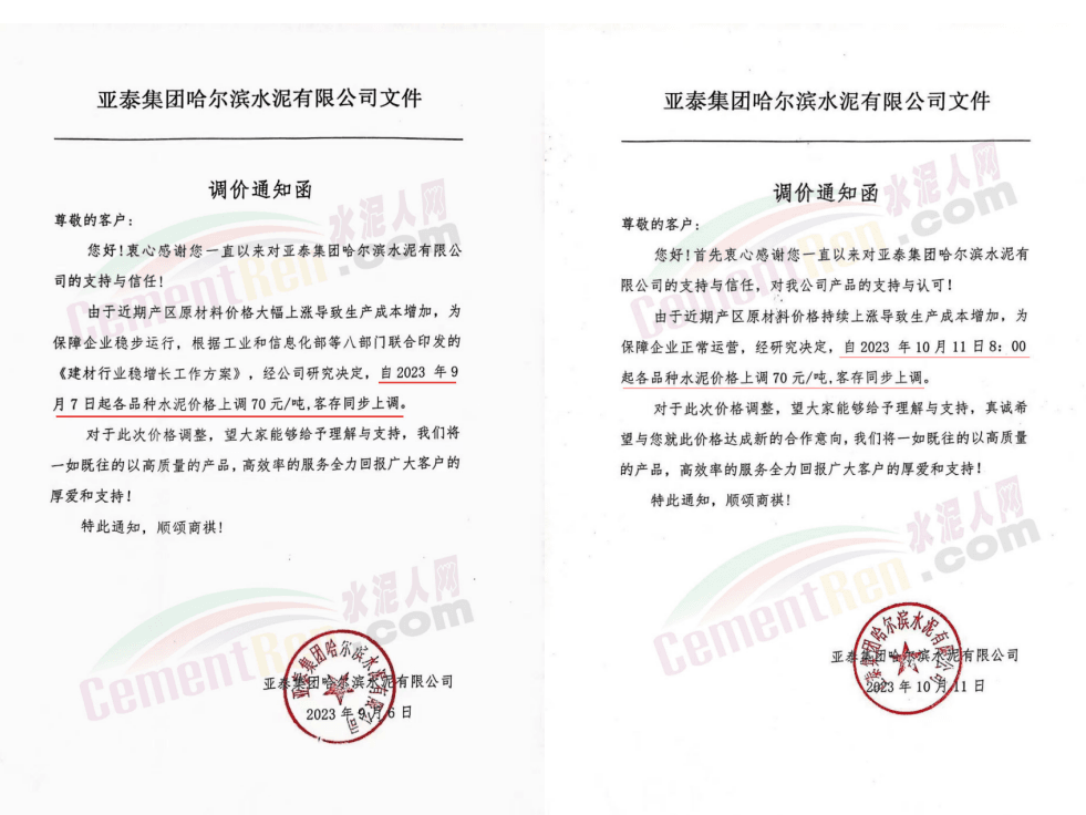 日前,山西太原金隅冀東水泥經貿有限公司通知稱,近期原材料持續(xù)上漲,生產能耗成本增加,導致公司生產成本增加。為維持企業(yè)正常生產經營,結合當前市場情況,公司研究決定,自2023年10月13日08:00起將左權公司全品種水泥在現行價基礎上上調50元/噸,熟料上調40元/噸。自12時起將陽泉、晉中太原區(qū)域PO425散裝水泥在現行價基礎上上調30元/噸,熟料上調40元/噸。