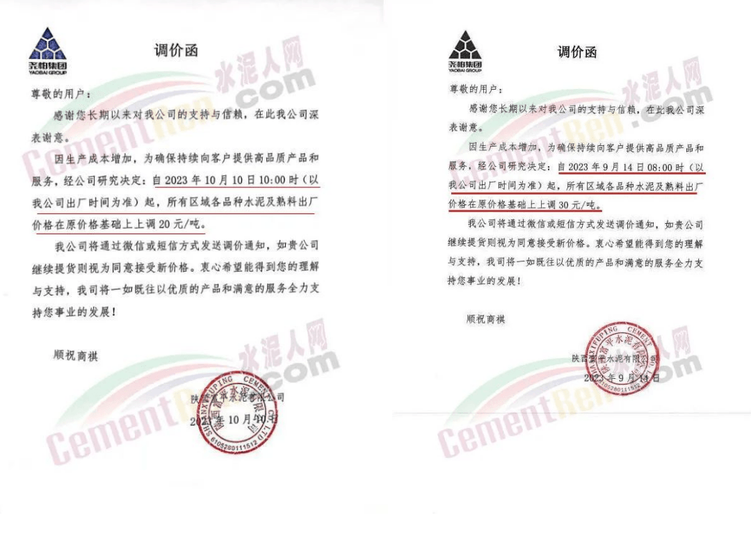 陜西關中區(qū)域主要品牌企業(yè)堯柏、冀東等分別于9月中旬和10月中旬兩次上調報價,累計上調50元/噸。