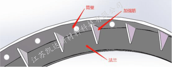 采用法蘭改造方案,在法蘭與筒壁之間加強筋法蘭邊緣與筒壁焊接,確保新舊法蘭之間安裝水平度,符合整體內(nèi)筒安裝的質(zhì)量要求,保證內(nèi)筒使用的穩(wěn)定性。