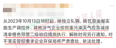 河北唐山區(qū)域通知,涉氣企業(yè)按照重污染天氣應(yīng)急減排清單橙色預(yù)警二級(jí)響應(yīng)措施執(zhí)行。