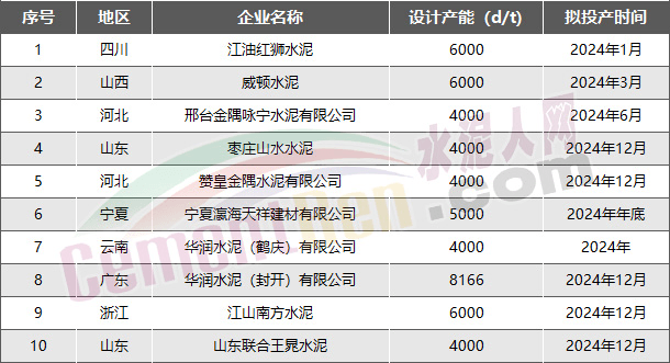 計劃于2023年、2024年點火投產水泥熟料生產線項目