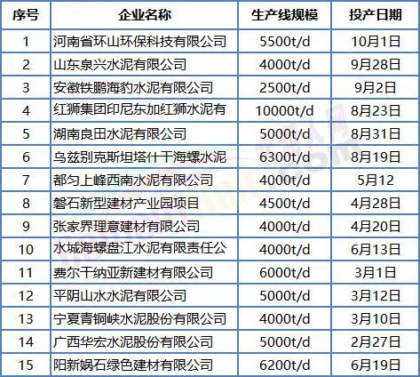 從目前各項目最新動態可見,部分在建項目已陸續點火投產,另有部分已開工在建項目正加緊建設中。據不完全統計已投產的15個熟料項目,合計產能達2280萬噸/年;下半年將投產的5個項目合計產能達810萬噸/年,合計產能達3090萬噸/年。