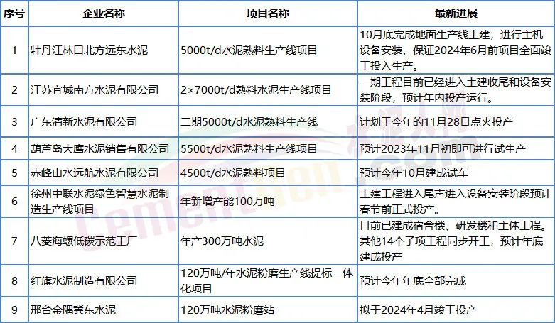 新建熟料、水泥生產線繼續加緊建設,陸續投產