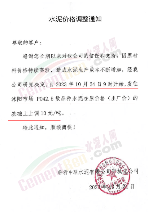 近來受原材料價格上漲和經濟政策的刺激,廣東、湖南、山西、陜西多地包括海螺水泥在內的多家品牌企業通知上調報價。廣東東莞鵬潤建材有限公司通知,根據目前的市場情況,從10月26日8時起公司供應的海螺全品項散裝水泥上調20元/噸。