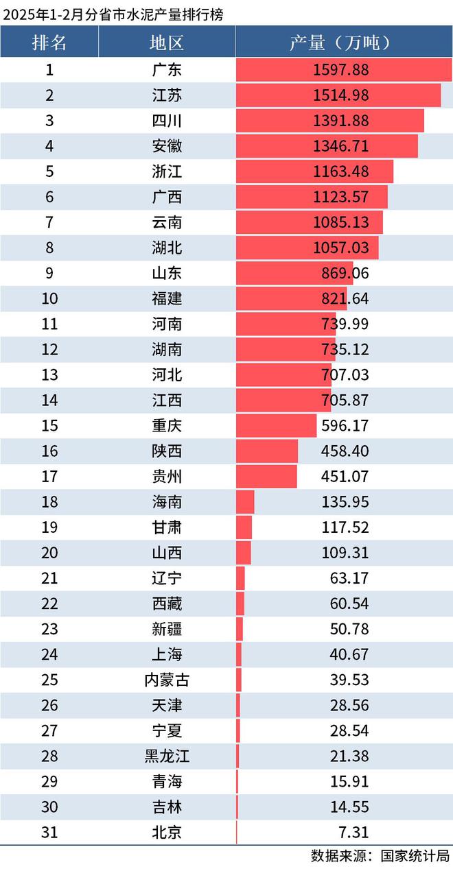 國家統(tǒng)計(jì)局?jǐn)?shù)據(jù)顯示,1-2月中國水泥產(chǎn)量為1.71億噸,同比下降5.7%。