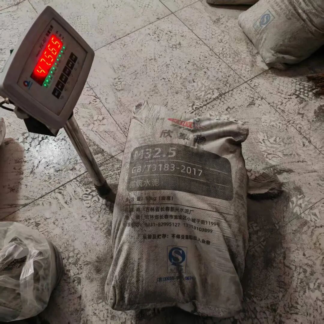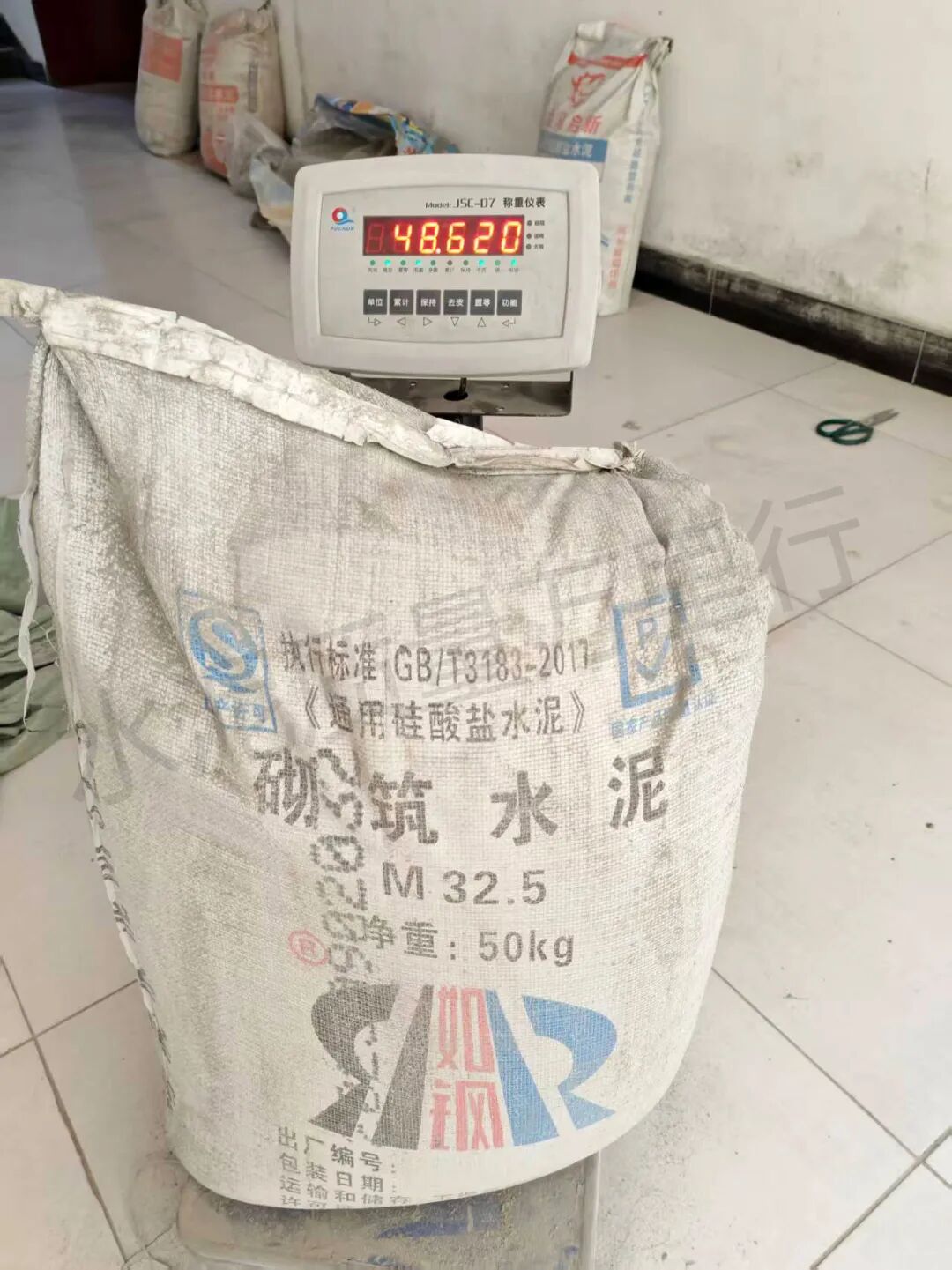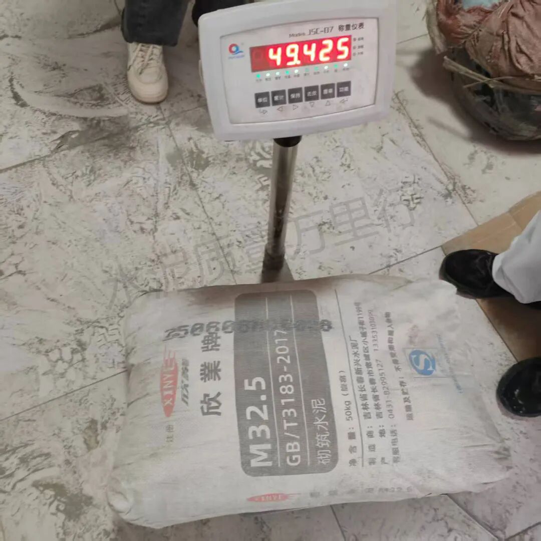 吉林省長春新興水泥廠“欣業(yè)”牌M32.5標稱50kg實測47.565kg、47.650kg、48.805kg、49.425kg、49.355kg